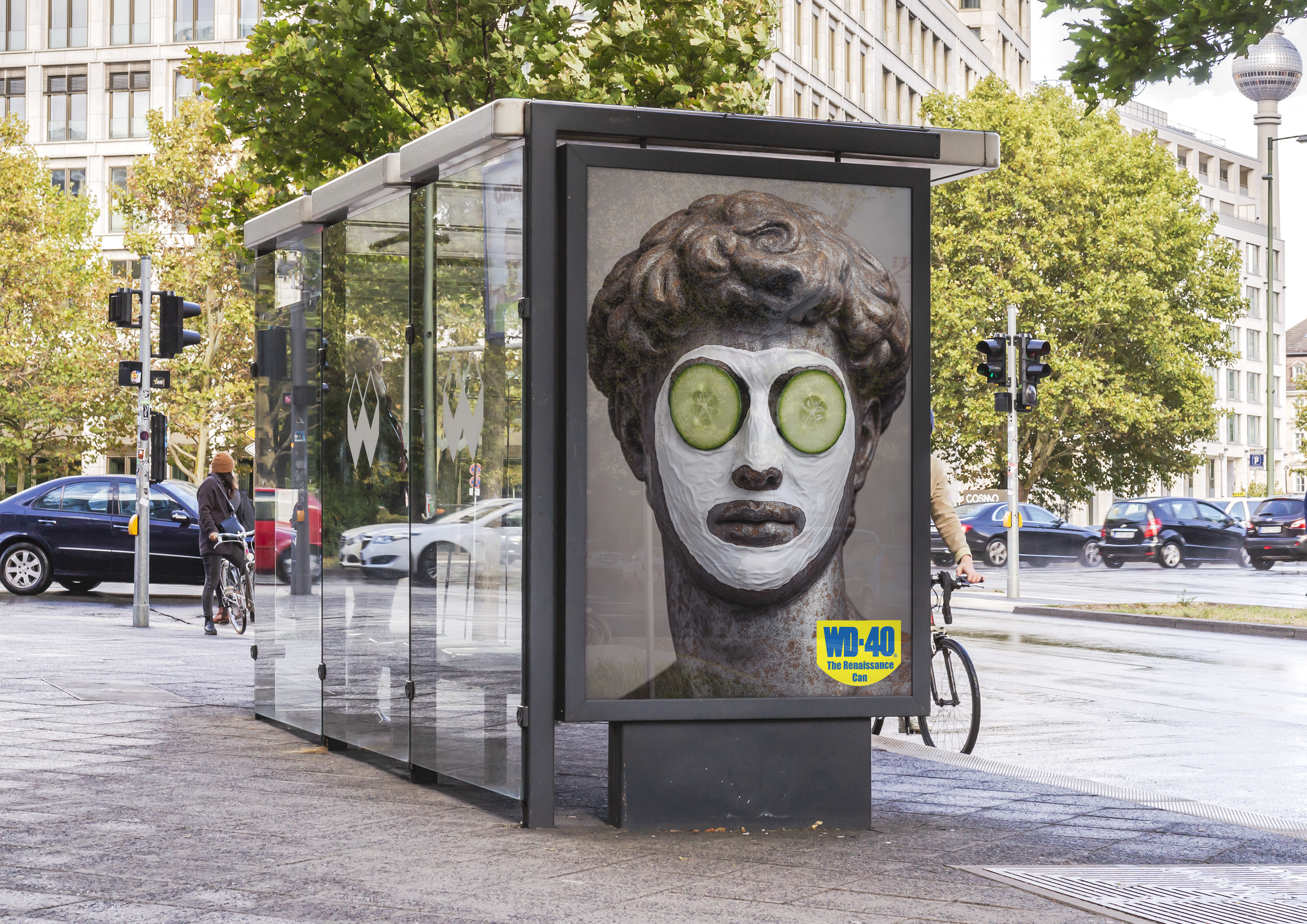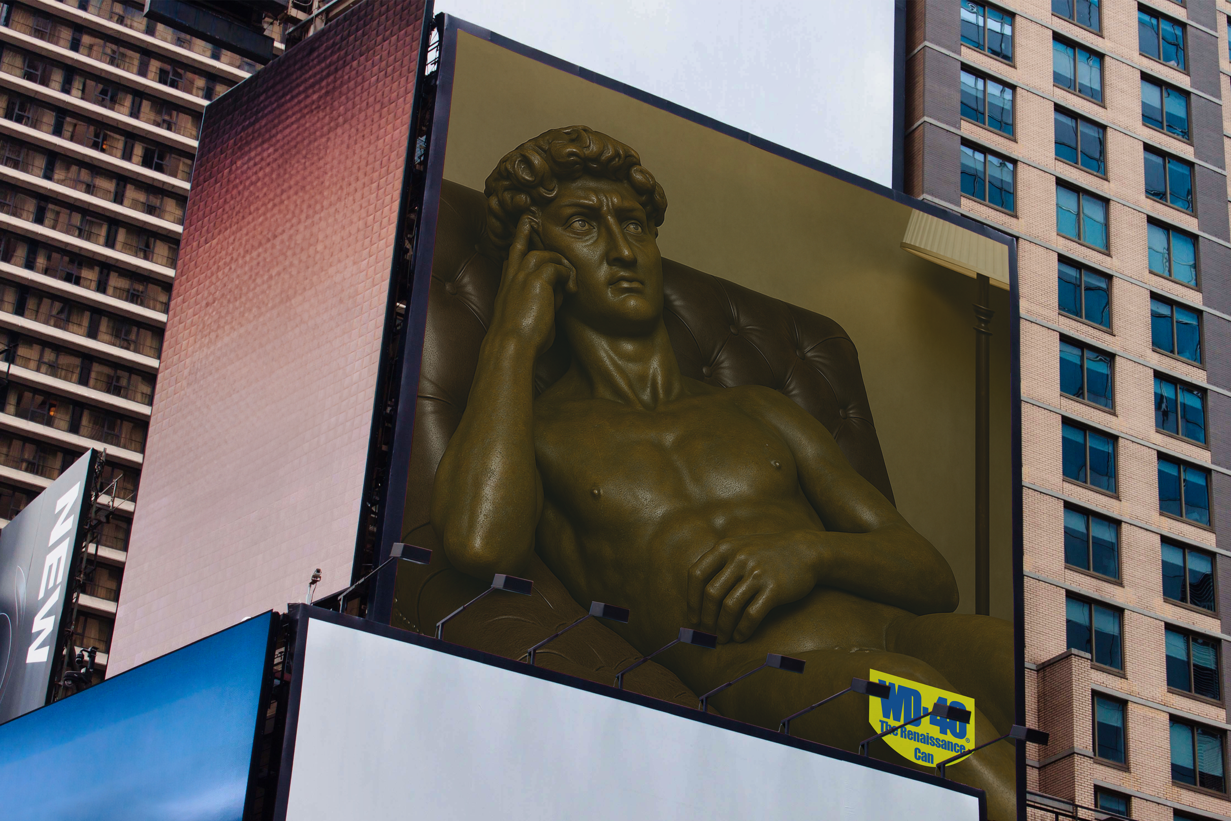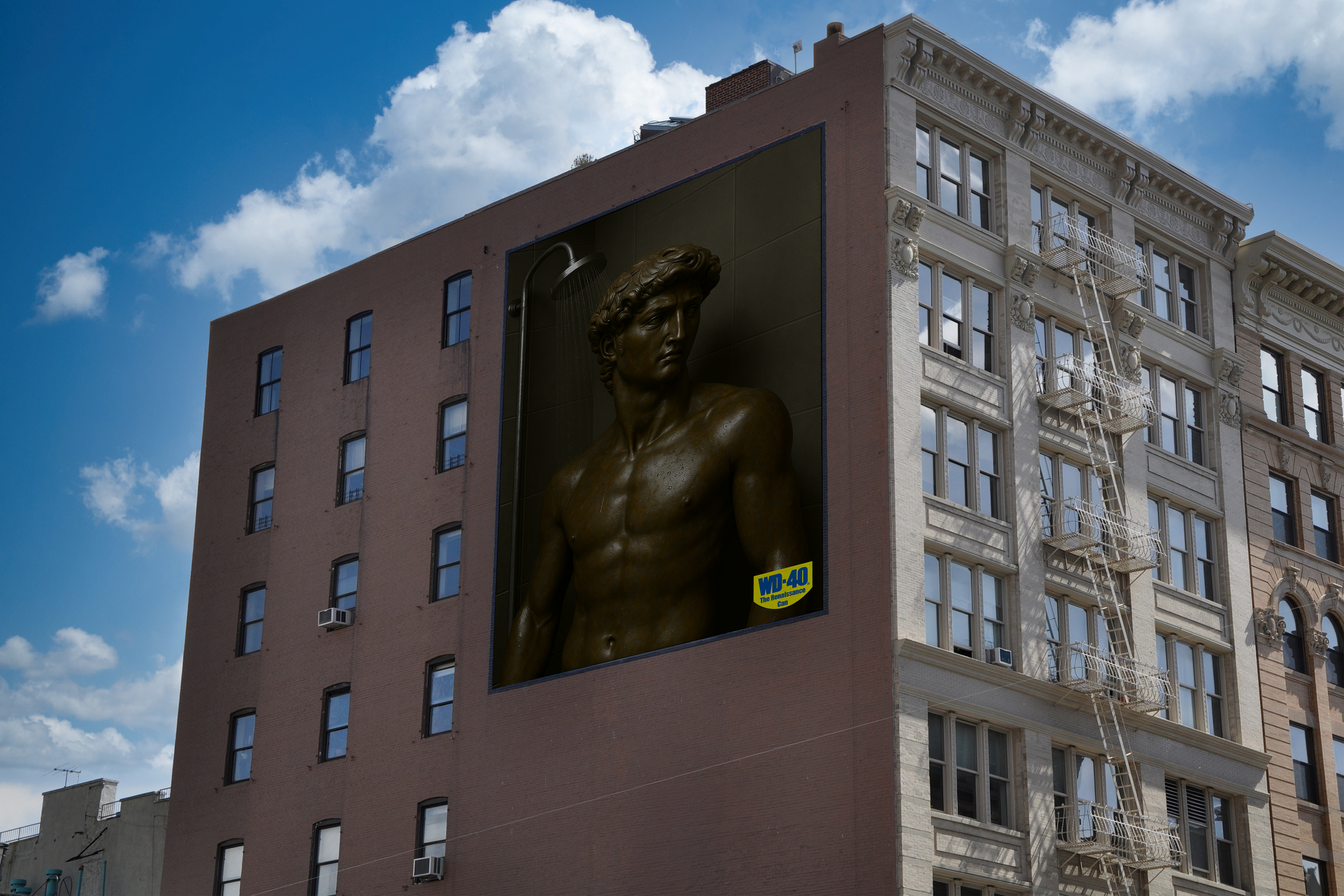 WD-40 is the can that keeps things going. And we brought that idea to life by putting one of history’s most iconic sculptures through a modern self-care routine. His new bronze patina isn’t just a fresh look—it’s symbolic. Bronze is the language of stiff things: the squeaky hinges, rust-worn garden furniture, seized-up tools, and stubborn bolts that WD-40 was made to free. By turning David bronze, we transformed him into a living metaphor for everything that’s been stuck too long, and everything that’s just one spray away from moving again.